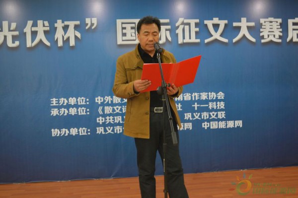 儀式進(jìn)行第二項(xiàng),市作協(xié)主席侯發(fā)山宣讀“鞏義—光伏杯”國(guó)際征文大賽方案。