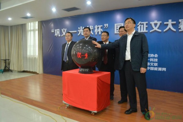 儀式進(jìn)行第五項(xiàng),市領(lǐng)導(dǎo)樊惠林、史建偉、談得勝和十一科技趙振元、余才志共同啟動(dòng)“鞏義—光伏杯”國(guó)際征文大賽。