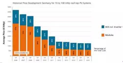 光伏的產(chǎn)業(yè),在很多西方發(fā)達(dá)國家發(fā)展的比較早,其中比較有代表性的國家就是德國。其光伏的產(chǎn)業(yè),政策,市場(chǎng)還有技術(shù)均有很多值得新興市場(chǎng)學(xué)習(xí)和借鑒的地方。其中,德國光伏產(chǎn)業(yè)的降價(jià)趨勢(shì)可以作為我們預(yù)測(cè)未來光