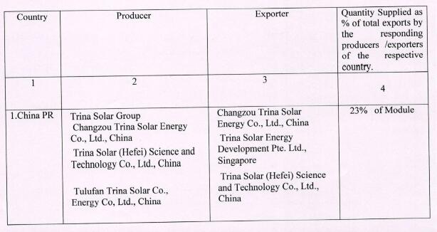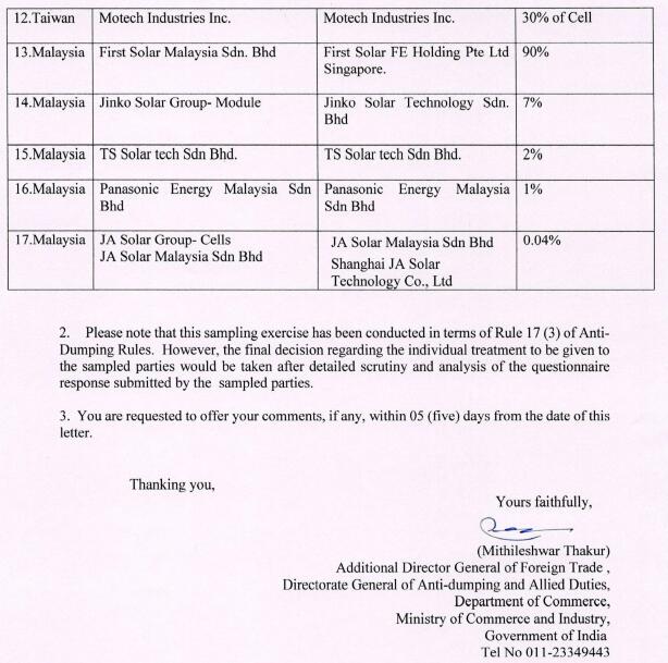 印度公布反傾銷調(diào)查中需要采樣的光伏企業(yè)名單(附原文件)