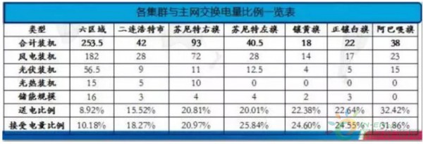 根據(jù)建模仿真分析數(shù)據(jù)結(jié)果,對(duì)集群與主網(wǎng)電力平衡分析,進(jìn)一步研究集群運(yùn)行與主網(wǎng)運(yùn)行電力交換情況。規(guī)劃區(qū)域內(nèi)(除阿巴嘎旗集群外)其他各集群與主網(wǎng)電量交換比例均控制在25%以內(nèi),六區(qū)域集群聯(lián)網(wǎng)運(yùn)行后向主網(wǎng)電量送電比例為8.92%,接受電量比例為10.18%??稍偕茉措娫磁c用電負(fù)荷電力平衡結(jié)果較好。