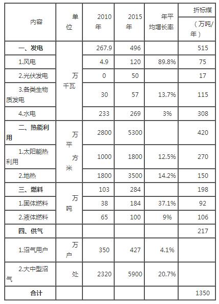 表1 “十二五”末可再生能源發(fā)展現(xiàn)狀