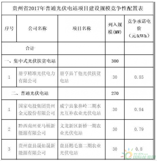 省能源局關于貴州省2017年普通光伏電站項目建設規(guī)模競爭性配置情況的通知