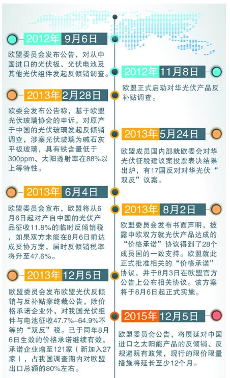 9月16日,歐盟委員會(huì)發(fā)布對(duì)華光伏反傾銷(xiāo)反補(bǔ)貼措施期中復(fù)審調(diào)查終裁公告,決定改變措施的形式,在措施剩余近一年的執(zhí)行期內(nèi),將原先的價(jià)格承諾方式替換為最低限價(jià)。
