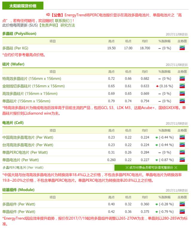根據(jù)集邦咨詢新能源研究中心(EnergyTrend)分析,在上周單晶電池片跌價后,本周供應(yīng)鏈仍在電池片環(huán)節(jié)有較明顯的后續(xù)效應(yīng)。單晶電池片廠家之間的競爭加劇,續(xù)有部份跌幅,組件端也因為上周單晶電池片降幅較大而有了讓利空間,可做出小幅價格下調(diào)。而單、多晶之間競爭則還未有明顯進展,由于當(dāng)前終端市場的需求主要來自先前開發(fā)商對第四季末安裝需求的評估,因此單多晶同價的效應(yīng)要傳導(dǎo)到下游,預(yù)估還要2-4周的時間。