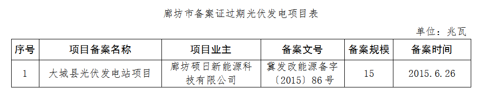 日前河北省發(fā)改委下發(fā)關(guān)于廊坊、石家莊市光伏發(fā)電項目備案證有關(guān)情況的復(fù)函,按照河北省能源局《關(guān)于一次性報送光伏發(fā)電項目備案證過期影響土地、環(huán)評、發(fā)電許可等手續(xù)辦理出具意見請示的通知》要求,廊坊市共上