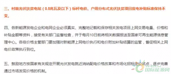 村級光伏扶貧電站(0.5兆瓦及以下)標桿電價、戶用分布式光伏扶貧項目度電補貼標準保持不變。意思就是:0.5MW及以下村級扶貧電站標桿電價繼續(xù)執(zhí)行2017年電價。戶用分布式光伏扶貧項目繼續(xù)執(zhí)行2017年電價。