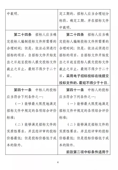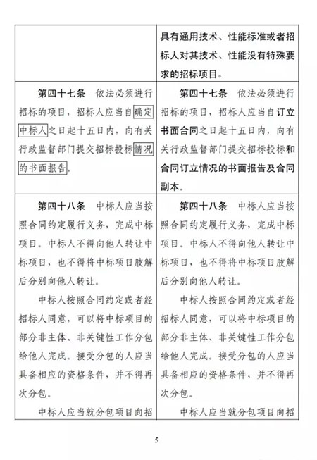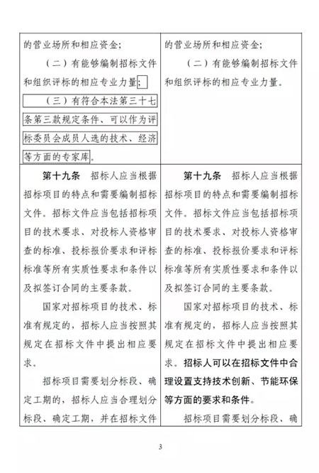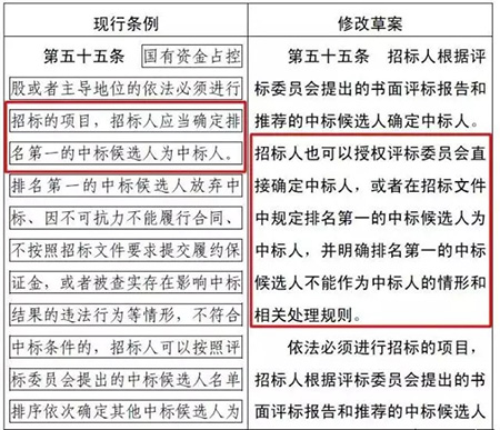其中,最受大家關(guān)注的一點是:招標(biāo)人可以直接確定中標(biāo)人。該條修改前后對照如下: