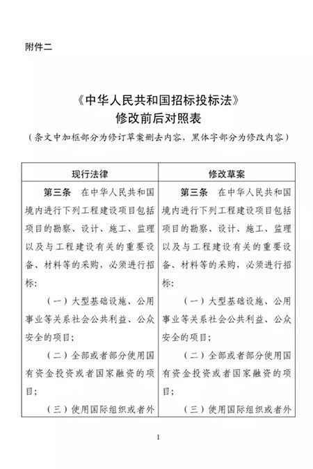 這意味著2017年9月20日改革委就修改《招標(biāo)投標(biāo)法》及《招標(biāo)投標(biāo)法實施條例》的征求意見稿,已經(jīng)簽署,2017年12月28日起正式施行。