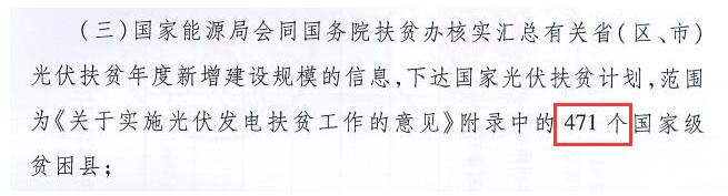 文件中明確,國(guó)家光伏扶貧計(jì)劃范圍為《關(guān)于實(shí)施光伏發(fā)電扶貧工作的意見(jiàn)》中圈出的471個(gè)國(guó)家級(jí)貧困縣。
