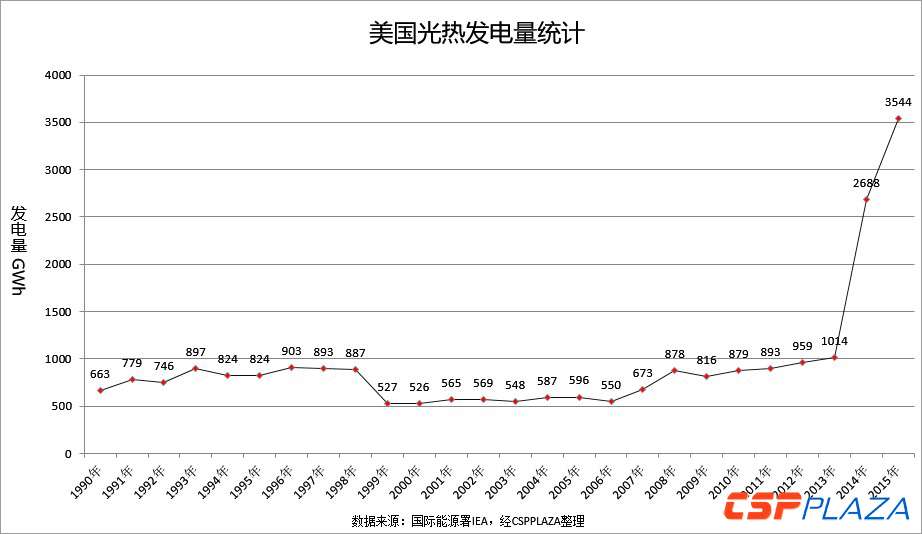 光熱發(fā)電自1980年代邁入商業(yè)化進(jìn)程已30多年,其在全球電力供應(yīng)結(jié)構(gòu)中的地位逐步提升,從1990年到2015年,全球光熱發(fā)電的總發(fā)電量由663GWh增