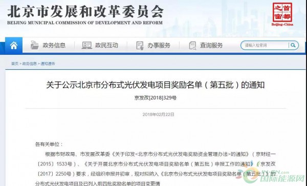 2月22日,北京發(fā)改委下發(fā)“關(guān)于公示分布式光伏發(fā)電項(xiàng)目獎(jiǎng)勵(lì)名單(第五批)”。