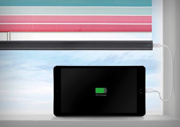 窗簾拉桿中有一塊圓柱形的儲能電池,其USB接口可為手機等設(shè)備充電。這塊體型小巧的電池可以取出,方便外出攜帶使用。