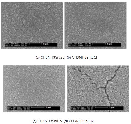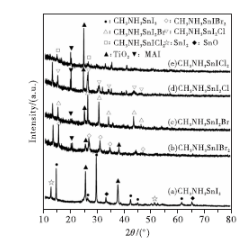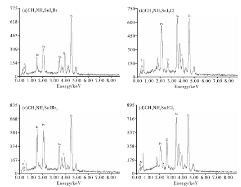 CH3NH3SnI3成分的鈣鈦礦薄膜具有最低的禁帶寬度增加,降低其在可見光范圍內(nèi)的吸光性能,過多的Br-、Cl-會導致鈣鈦礦薄膜結晶性能降低。
