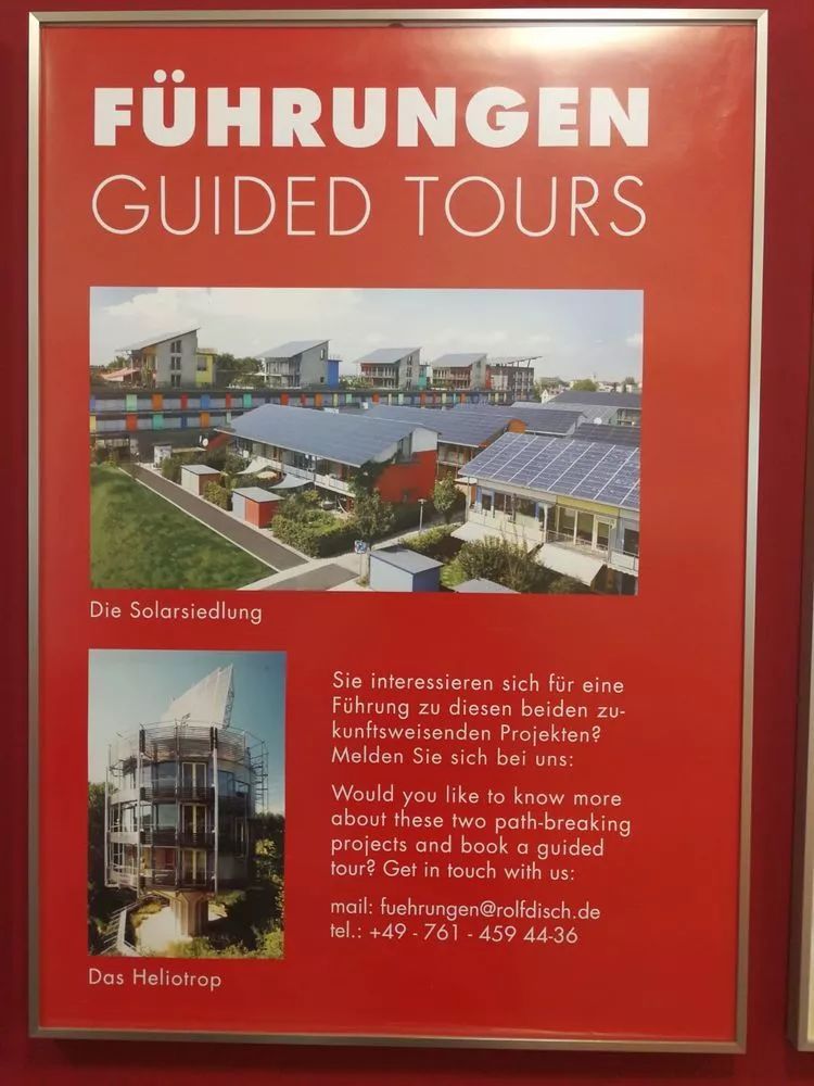 下圖是弗賴堡著名的向日葵建筑。上面的光伏板是向陽轉(zhuǎn)動(dòng)的。