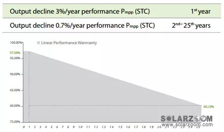 第一年3%的總衰減(數(shù)據(jù)取自正泰太陽能多晶硅組件的25年衰減)