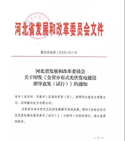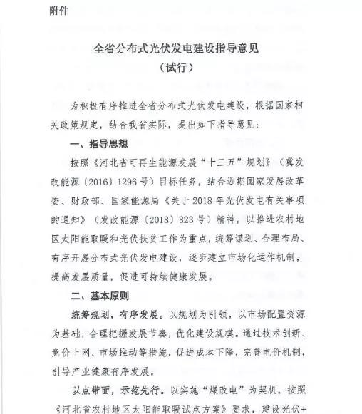 河北正式印發(fā)《全省分布式光伏發(fā)電建設(shè)指導(dǎo)意見(試行)》