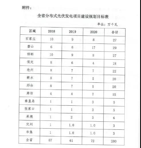 6月20日,河北省發(fā)展和改革委員會正式印發(fā)《全省分布式光伏發(fā)電建設(shè)指導(dǎo)意見(試行)》。意見中指出到2020年,力爭全省新增分布式光伏發(fā)電規(guī)模2GW,累計達到4GW,其中2018年計劃新增670MW。