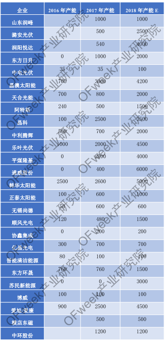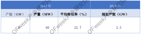 其次是有望后來者居上的HIT電池,2017年國內(nèi)HIT電池已經(jīng)形成產(chǎn)能1GW,但是產(chǎn)量有限,僅為60MW,平均轉(zhuǎn)化效率為22.7%,預(yù)計2018年將迎來異質(zhì)結(jié)發(fā)展元年,2018年規(guī)劃產(chǎn)能將為2.5GW,總產(chǎn)能將達(dá)到3.5GW。