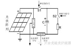 電容式I-V測(cè)試儀以充電式動(dòng)態(tài)電容作為光伏組件的動(dòng)態(tài)負(fù)載,實(shí)際測(cè)試時(shí),光伏組件因有光生電流對(duì)電容充電,電容在開(kāi)始充電時(shí),阻抗很低幾乎為零,充電回路相當(dāng)于短路,當(dāng)充電結(jié)束,阻抗非常高,充電回路相當(dāng)于開(kāi)路,那么在電容的充電過(guò)程中,電容的阻抗從0變到無(wú)窮大,相當(dāng)于光伏組件或陣列的負(fù)載電阻從0變化到無(wú)窮大,然后對(duì)電壓電流進(jìn)行采樣,這些采樣點(diǎn)構(gòu)成了光伏組件的I-V特性曲線(xiàn)。