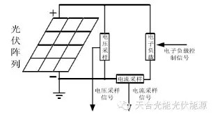 據(jù)調(diào)研目前市場(chǎng)上常用的便攜式I-V測(cè)試儀主要有可變電子負(fù)載式和動(dòng)態(tài)電容式兩種,如圖2和圖3所示,可變電子負(fù)載式是儀器自身內(nèi)置了電子負(fù)載,當(dāng)電阻從0變到無(wú)窮大的時(shí)候,儀器通過(guò)采集上百個(gè)負(fù)載點(diǎn)所對(duì)應(yīng)的工作電流和工作電壓值來(lái)構(gòu)成整條I-V曲線(xiàn),并通過(guò)算法尋找到最大功率點(diǎn)。