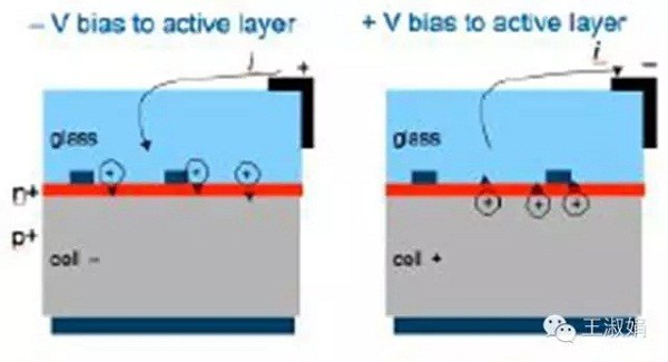 圖二施加正負(fù)偏壓時(shí)pn結(jié)活性區(qū)的離子遷移情況