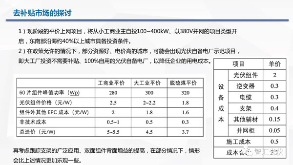 自發(fā)自用、余電上網(wǎng):10GW的規(guī)模指標(biāo),531之后并網(wǎng)無國家補(bǔ)貼(地方政府想辦法?),要參與競價(jià)