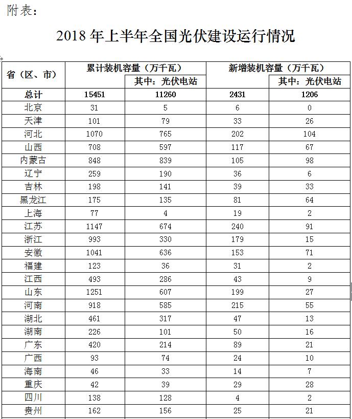 國家能源局:2018年上半年光伏建設(shè)運(yùn)行情況