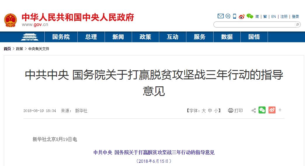 按照黨的十九大關(guān)于打贏脫貧攻堅戰(zhàn)總體部署,根據(jù)各地區(qū)各部門貫徹落實《中共中央、國務(wù)院關(guān)于打贏脫貧攻堅戰(zhàn)的決定》的進(jìn)展和實踐中存在的突出問題,現(xiàn)就完善頂層設(shè)計、強化政策措施、加強統(tǒng)籌協(xié)調(diào),推動脫貧攻堅工作更加有效開展,制定以下指導(dǎo)意見。