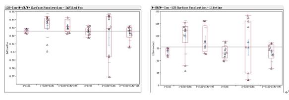 圖8 不同鈍化層在N+摻雜面的Implied-Voc和少子壽命