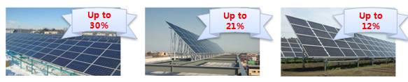 nPERT電池具有20%以上的單面轉(zhuǎn)換效率,制備的雙玻組件正面功率達(dá)280W以上,結(jié)合不同的雙面光照條件,可實(shí)現(xiàn)10%~30%的發(fā)電量增益(可采用廉價(jià)背面反射材料,大幅提升組件發(fā)電量),如圖4所示;