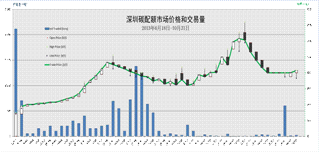 日均及總交易量預(yù)期會在 《深圳市碳排放權(quán)交易管理辦法》頒布(2013 年 12 月)、碳排放報告提交(2014年3月31日)、核查報告提交(2014年4月30日)及配額和核證自愿減排量提交履約之時(2014 年6月30日)有顯著增長。