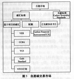 從總體來講,自愿市場分為碳匯標(biāo)準(zhǔn)與無碳標(biāo)準(zhǔn)交易兩種。自愿市場碳匯交易的配額部分,主要的產(chǎn)品有芝加哥氣候交易所(CCX)開發(fā)的CFI(碳金融工具)。自愿市場碳匯交易基于項目部分,內(nèi)容比較豐富,近年來不斷有新的計劃和系統(tǒng)出現(xiàn),主要包括自愿減排量(VER)的交易。同時很多非政府組織從環(huán)境保護與氣候變化的角度出發(fā),開發(fā)了很多自愿減排碳交易產(chǎn)品,比如農(nóng)林減排體系(VIVO)計劃,主要關(guān)注在發(fā)展中國家造林與環(huán)境保護項目;氣候、社區(qū)和生物多樣性聯(lián)盟(CCBA)開發(fā)的項目設(shè)計標(biāo)準(zhǔn)(CCB),以及由氣候集團、世界經(jīng)濟論壇和國際碳交易聯(lián)合會(IETA)聯(lián)合開發(fā)的溫室氣體自愿減量認(rèn)證標(biāo)準(zhǔn)(VCS)也具有類似性。至于自愿市場的無碳標(biāo)準(zhǔn),則是在《無碳議定書》的框架下發(fā)展的一套相對獨立的四步驟碳抵消方案(評估碳排放、自我減排、通過能源與環(huán)境項目抵消碳排放、第三方認(rèn)證),實現(xiàn)無碳目標(biāo)。
