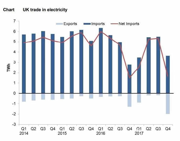 英國本土發(fā)電量為3350千瓦時,凈進(jìn)口量為148億千瓦時,比2016年下降15.6%。進(jìn)口下降的主要原因是英法聯(lián)網(wǎng)線路在2017年第一季度發(fā)生故障,加上2017年第4季度法國核電站的維修。