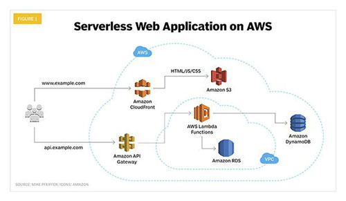 圖1:亞馬遜網(wǎng)絡(luò)服務(wù)(AWS)上的無服務(wù)器計(jì)算架構(gòu)顯示了無服務(wù)器如何將應(yīng)用程序與支持它們的硬件隔離開來