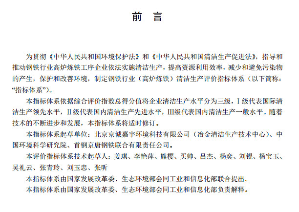 國家發(fā)改委:鋼鐵行業(yè)(高爐煉鐵)清潔生產(chǎn)評價指標(biāo)體系