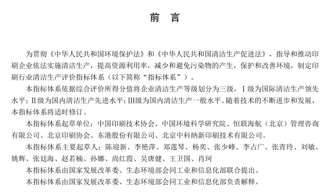 國家發(fā)改委:印刷業(yè)清潔生產(chǎn)評價體系