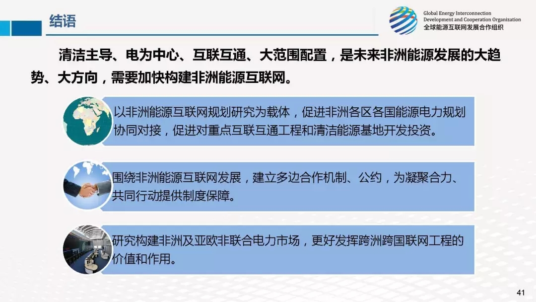 研究構(gòu)建非洲及亞歐非聯(lián)合電力市場,更好發(fā)揮跨洲跨國聯(lián)網(wǎng)工程的價值和作用。