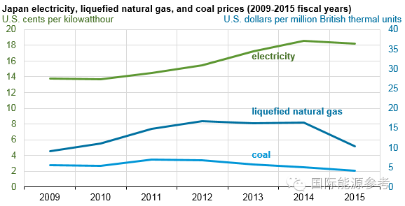 對電力市場而言,燃料價(jià)格的下降無疑是利好的消息。近兩年來,煤炭、天然氣價(jià)格的下滑在全球令許多消費(fèi)者的電力賬單都減負(fù)不少。然而,在能源進(jìn)口大國日本,電力消費(fèi)者非但沒有感受到這一“實(shí)惠”,用電的價(jià)格反而一直在增長。