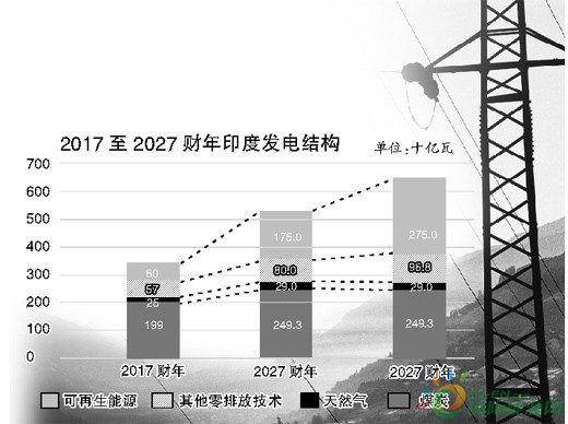 近日,印度中央電力管理局公布了第三份《國家電力規(guī)劃》(草案),對印度未來十年的電力需求及發(fā)展做出了預(yù)測和建議。該規(guī)劃草案預(yù)計,2027年前,可再生能源、核電、大水電等非化石燃料將占印度發(fā)電裝機容量的一半以上(56.5%)。該草案同時提出,為實現(xiàn)2022年可再生能源發(fā)電裝機175吉瓦的目標(biāo)(該目標(biāo)也與印度的《巴黎協(xié)定》承諾相一致),且考慮到目前已有50吉瓦煤電項目在建,印度至少在2027年前無需新建任何煤電產(chǎn)能。