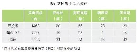 截至2016 年年底,英國海域共投運了29 個海上風電場,還有裝機容量530 萬千瓦的項目正處于施工建設中。