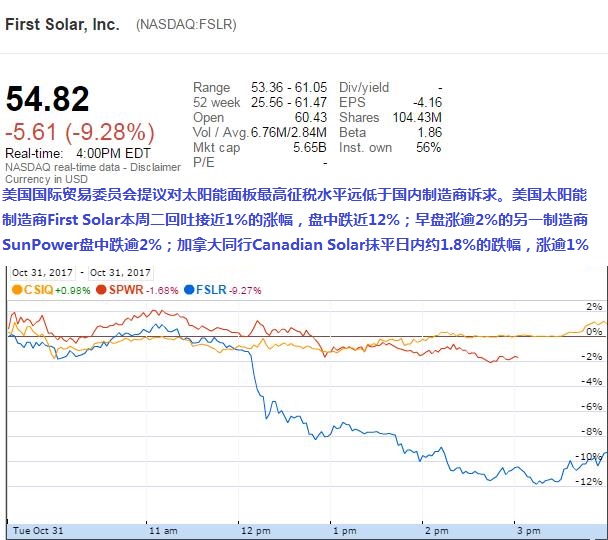 本周二ITC提議公布后,美國太陽能制造商領頭羊股價明顯走低。