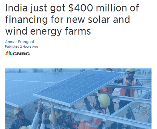 近日,印度可再生能源行業(yè)已獲歐洲投資銀行(EIB)與印度商業(yè)銀行Yes Bank聯(lián)合項目的4億美元投資。