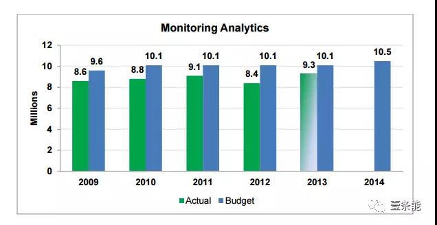 當(dāng)然,也有人反對引入市場監(jiān)測。比如Cinergy認(rèn)為,如果傳輸市場(指輸配環(huán)節(jié))實現(xiàn)了NOPR的設(shè)想,以FERC和法院作為后盾,商品市場(指電力交易環(huán)節(jié))就能夠自我調(diào)節(jié),因此不需要市場監(jiān)測。一些評論者,如Metropolitan 及Southern Company公司,認(rèn)為在已經(jīng)有州及聯(lián)邦監(jiān)管部門的情況下,再引入RTO監(jiān)測,這屬于疊床架屋,復(fù)制已經(jīng)存在的成本高昂的監(jiān)管責(zé)任。事實上,市場監(jiān)測的確不便宜,以下是PJM的第三方監(jiān)測公司的歷年預(yù)算。為什么這么貴?值不值?之后會加以介紹。