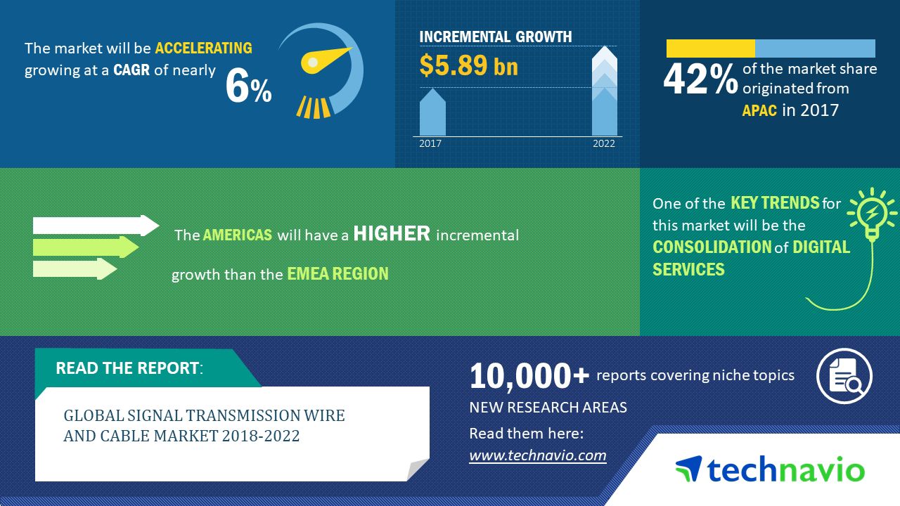 根據(jù)Technavio發(fā)布最新的市場(chǎng)研究報(bào)告,全球信號(hào)傳輸電纜市場(chǎng)預(yù)計(jì)在2018-2022年的復(fù)合年增長(zhǎng)率接近6%。預(yù)計(jì)到2022年,全球信號(hào)傳輸電纜市