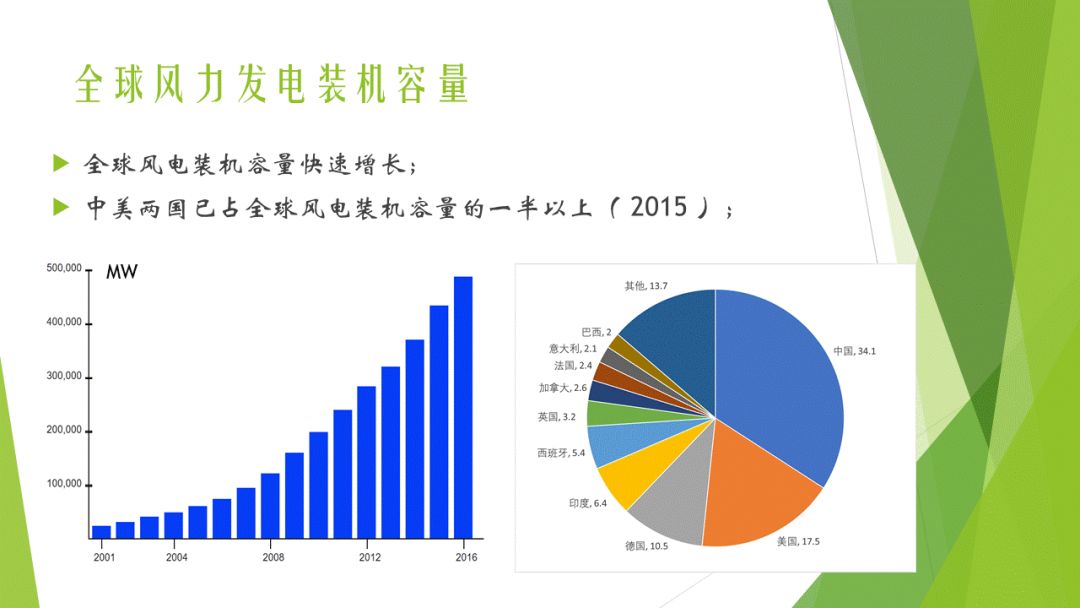全球的風(fēng)電裝機(jī)在快速增長,中美兩國的風(fēng)電裝機(jī)已經(jīng)占到全球風(fēng)電裝機(jī)容量的一半以上。