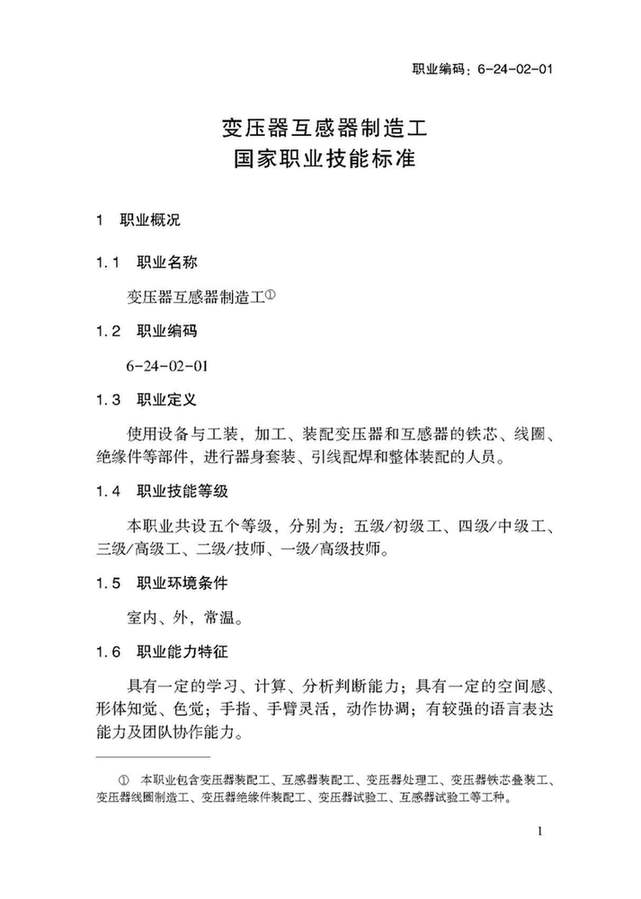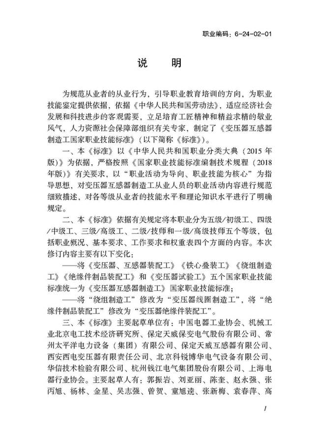 人力資源和社會保障部:變壓器互感器制造工國家職業(yè)技能標(biāo)準(zhǔn)