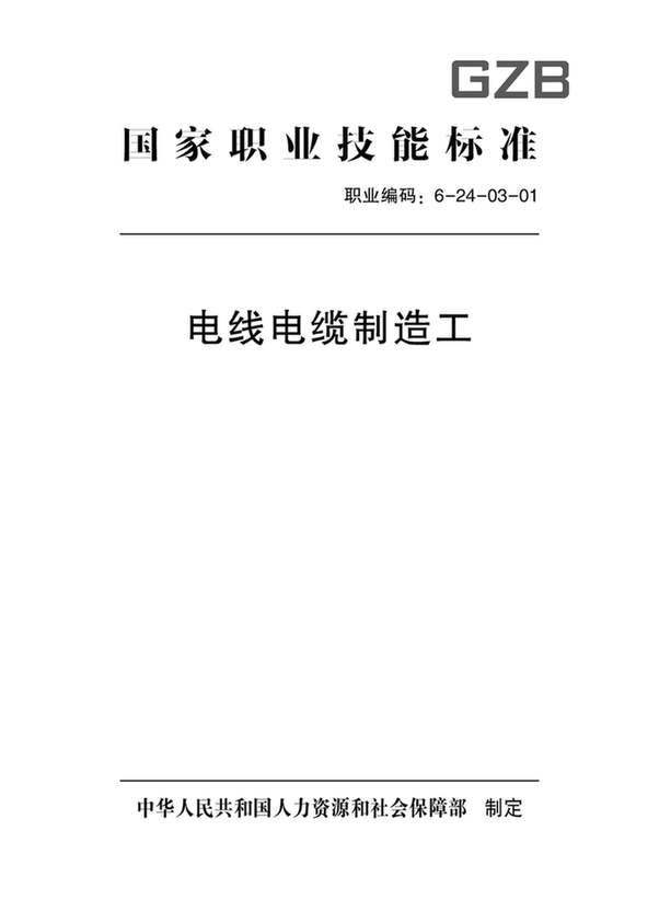 人力資源和社會保障部:電線電纜制造工國家職業(yè)技能標(biāo)準(zhǔn)