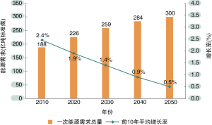 從全球一次能源需求總量和增長率可以看出,未來全球一次能源需求持續(xù)增長,增速逐步放緩。