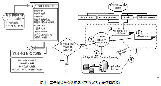 AIS客戶端用戶指紋身份認證與識別成功后,登錄與訪問AIS模式需要進行:AIS產(chǎn)生隨機用戶User_radom;將User_radom用戶與服務(wù)器登錄用戶在AIS中進行關(guān)聯(lián)定位與映射;檢索服務(wù)器中登錄用戶角色、權(quán)限信息對User_radom用戶進行動態(tài)授權(quán)和綁定;執(zhí)行AIS業(yè)務(wù)管理;啟動相應(yīng)退出策略,取消服務(wù)器用戶映射和授權(quán),注銷安全資源,保存日志等。